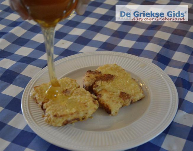 Giet wat Griekse honing over de Saganaki