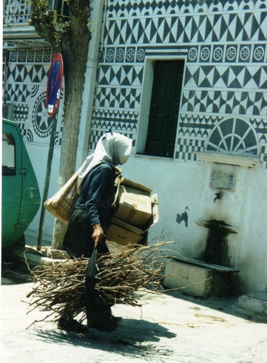 Langs de zuidkant is het een ritje van 30 km door een fraai deel berglandschap, naar dit leuke toeristenplaatsje met langs de weg mastiekbomen. We rijden door dorpjes met namen die moeilijk uit te spreken zijn. Mooie bewerkte huizen en een gezellig dorpsplein. Door een donker steegje zien we achter een gesloten poort een ruw stenen kapel. Een vrouwtje dat met lege dozen een bos takken loopt te slepen vertelt ons waar de man met de sleutel woont. We besluiten hier een paar uur door te brengen.