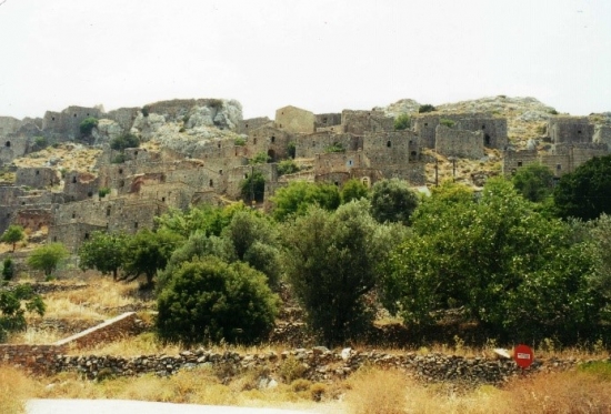 Na een flink stuk bergopwaarts staan we plots voor het grauw grijze dorp Avgonyma. De straatjes zijn nauw, de vensters klein in de hoge stenen huizen. Net als het dorp Anavatos, waar we nu zijn, hebben ze veel te lijden gehad van de Turkse overheersing. Je hebt er wel een prachtig uitzicht over de vlakte. We lopen de steile plavuizen pad op, dat trapsgewijs tussen de huizen tegen de berg staan. Op een eenzame bewoner na is het doodstil en verlaten. De oude man verkoopt lokale artikelen. We kopen van de oude baas wat zakjes oregano, en vijgen voor onderweg. Dan keren we terug naar de scooters; het pad loopt dood. Door een prachtig dennenbos rijden we naar de westkust. Langs de kant borden met een dotovrerbod; een militair gebied.