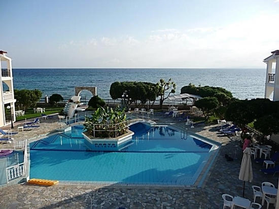 Het is al weer 16 jaar geleden dat we op Zakynthos zijn geweest. We zaten net buiten Laganas. Nu waren we 45 jaar getrouwd, een mooie gelegenheid om begin mei dit eiland weer eens te bezoeken en dit te vieren. Maar nu in Argassi, niet ver van de hoofdstad. En wat nog prettiger was, je kon er ook redelijk met de fiets uit de pedalen. Toen de bus Argassi binnen reed, leek het ons toe dat er heel wat veranderd was. De besproken appartementen van Illisa Beach waren nog niet open. Dat was even slikken. Maar vijftig meter verder bezat de eigenaar ook Hotel Porto Illisa. Hij bood ons een twee kamer appartement aan, centraal op de 2e etage. Of we daar akkoord me gingen; meer dan. Deze bruidssuite, was een lot uit de loterij. Zicht op de binnenplaats, met zwembad en de zee. De man was zo verguld dat we zonder protest de verandering aanvaardden, dat hij ons ’s avonds uitnodigde aan de buitenbar voor een ouzo. Kan je vakantie beter beginnen; wij dachten van niet.