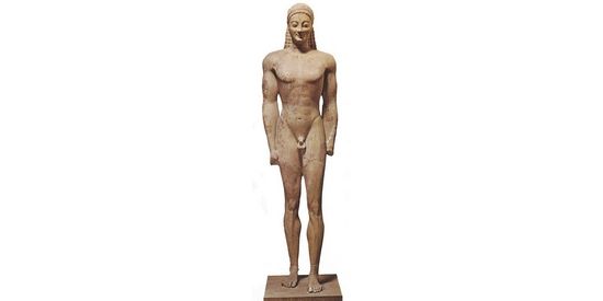 Uit de periode rond 650 v. Chr. zijn de zgn. ‘Kouroi’ gevonden. Grote, mensfiguren van kalksteen en marmer. Kenmerkend is de zogenoemde archaïsche glimlach. Men gaat ervan uit dat deze glimlach werd aangebracht om de beelden een menselijke uitstraling te geven.