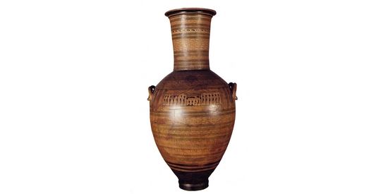 Uit deze tijd zijn eigenlijk alleen beschilderd keramiek en kleine beeldjes teruggevonden. Waar men eerst gebruiksaardewerk met eenvoudige zwarte banden en later met abstracte zigzagpatronen, meanders, ruitvormige motieven en concentrische cirkels beschilderde, werden in de geometrische periode voor het eerst kleine schematische mens- en dierfiguren afgebeeld.