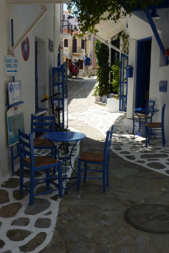 We kiezen steeds voor een schitterend appartement, net even buiten het centrum van Skiathos-stad met alleen maar logies. We genieten van een ontbijtje op ons balkon, waarbij we een schitterend uitzicht hebben op de zee. Wat is er lekkerder dan een vers broodjes bij de bakker te halen, en te genieten van het fijne en mooie dat Griekenland op zo’n moment biedt. Een totale onthaasting van het dagelijkse leven. Bij Palmyra, het appartement waar wij de laatste jaren komen werden we ontvangen door bij aankomst welkom geheten door Maria en Jannis. We bestelden een kopje koffie. We kregen er een bordje met koekjes bij en een fles water, waar we niet om vroegen. Op het moment dat we af wilden rekenen kregen we te horen dat zoiets niet hoeft , de eerste dag.