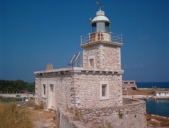 Dat is waar. Want Lefkas is verbonden met een smalle dijk en een aantal pontons aan het vaste land. Het eerste wat je ziet voordat je de verbinding weg over gaat, is de burcht, met het vuurtorentje.