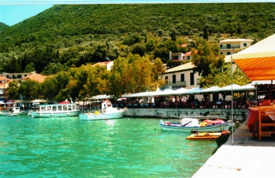 Zoals alle jaren huren we ook nu weer scooters. De keus valt op plaatsjes richting zuidkust. We volgen de weg naar Poros, door een schitterend gebied met olijfgaarden en hoge cipressen, maar ook noten en vijgenbomen. De weg naar de baai van Poros is steil naar beneden. Een prachtig strand. Maar we blijven niet lang, want een andere plek lonkt. Aan een langwerpige baai, ligt het schilderachtige plaatsje Syvota, bijna ingeklemd tussen de heuvels rondom. Er liggen tientallen zeilboten, maar ook enkele vissersvaartuigen. De taverna’s zijn leeg en blakeren in de zon. We puffen van de hitte, dus stappen we op de voertuigen en gaan naar Vassiliki, aan een grote baai waar altijd wel wind staat. Als we langs een bergdorp rijden is het net of je door een hete föhn rijd. Dan komen we in het groene dal, ‘t stille dal, daar waar de blommekes bloeien. Net voor het gezellige havenstadje hangt een lijn vol vlaggen; een leuke binnenkomst. Even later kuieren we langs de kade van de oergezellige haven. Hier liggen de terrassen pal aan het water. Even een moment om een poosje te ontspannen.