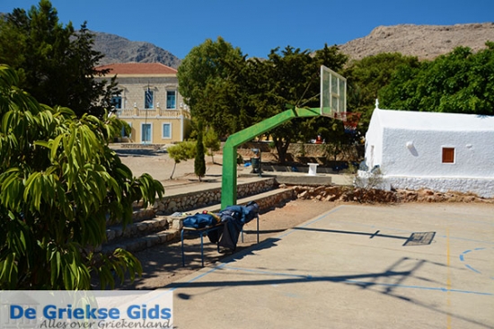Vooraf hadden we gehoord dat er een zeer mooi zandstrand op 10 minuten wandelen van de haven was en bij een souvenirwinkel vroegen we de weg ernaartoe. We wandelden de lichte helling naar boven en kwamen voorbij de school van het eiland. Het was daar zeer rumoerig en er waren een honderdtal mensen en kinderen op het schoolplein, we beseften; dit zijn vluchtelingen! We waren verrast. Aan het schoolhek zag ik toeristen met ze praten. We liepen langs het hek en wat ons opviel was dat al deze mensen zeer netjes waren. Kinderen speelden met een bal, moeders zaten in de schaduw. Opvallend waren de vele jongeren, studentachtige types. Een jonge man met een staartje zwaaide vriendelijk naar ons en zei ‘Have fun at the beach’ . We zwaaiden terug.