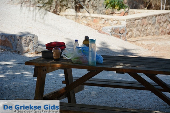 Een paar minuten laten waren we op het mooie zandstrand, genaamd Pontamos. In de baai zagen we een achttal jachten, wat een contrast met de vluchtelingen 100 meter verder! Aan het strand bevindt zich een leuke beachbar en restaurant. Wij konden het niet laten en wilden meer weten over de vluchtelingen. De eigenaar van het restaurant vertelde ons dat Turkse mensensmokkelaars om de twee dagen een honderdtal vluchtelingen, vooral Syriërs, aan de andere kant van het eiland droppen. ‘Vroeger waren het maar 100 mensen per maand’ en hij vervolgt ‘het zijn vooral jonge, intelligente mensen die voor hun leven vluchten. We proberen de mensen die het nodig hebben te helpen en eten en drinken te geven. Veel gezinnen brengen dagelijks eten en drinken naar hen toe en er zijn een paar rijkere eilandbewoners die hun hand dieper in de zak steken en deze mensen helpen. De meeste vluchtelingen zijn echter welgesteld en hebben geld. Enkele malen per dag gaan onze dorpsgenoten voor ze naar de supermarkt om boodschappen voor ze te doen, water, melk, brood en andere producten worden voor ze gehaald. Zelf mogen ze niet naar buiten. Om de dag worden ze dan opgehaald en met grote ferries naar Rhodos gebracht en vanaf daar naar Athene’.