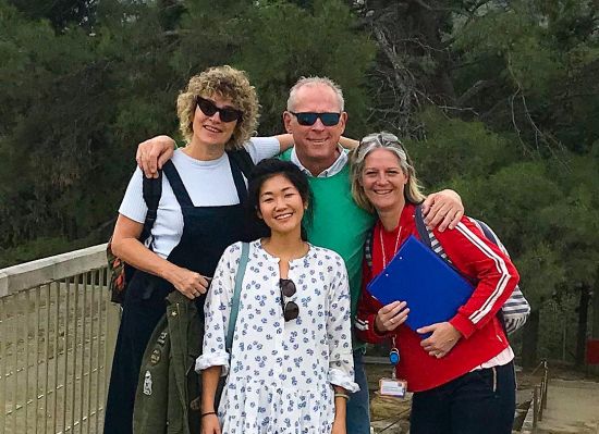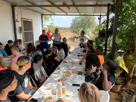 Na het bezoek aan het klooster ontmoeten we buiten de poort Marianna. Marianna is een jonge vrouw die sinds een jaar een eigen bedrijfje is gestart. Het bedrijfje verzorgt foodtours en kookworkshops op het landgoed van haar familie. Wij krijgen een rondleiding en uitleg over de olijvenoogst, de kassen en aansluitend bezoeken wij het eenvoudige landhuis van de familie. De hele familie is aanwezig en er is veel te veel eten gemaakt voor ons. Sommige studenten proeven alles maar er zijn er ook bij die dit eten niet lusten. Na afloop van het bezoek krijgen we allemaal een flesje extra virgin olijfolie van eigen productie. Omdat het uitzonderlijk mooi weer is besluiten we om naar Matala te rijden. Op dit mooie strand is het momenteel heel rustig. We kopen snel wat badkleding en nemen een duik in de blauwe zee. De studenten willen graag langer blijven maar dat zit er helaas niet in. We moeten verder naar de stad Rethymnon.