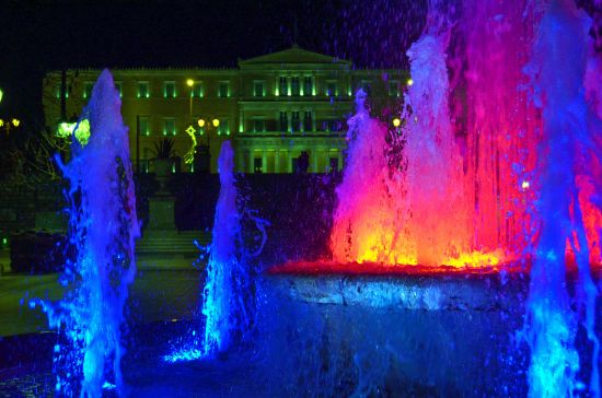 Om in de kerststemming te komen ga je naar het Syntagmaplein. De bomen op het plein zijn behangen met lichtje en de grote fontein midden op het plein spuit gekleurd water. Hoogtepunt is de grote kerstboom. Een modern exemplaar van metaal en duizenden lichtjes. Voor het ultieme kerstgevoel trakteer je jezelf op een hightea in de wintergarten van hotel Grand Bretagne. Dit hotel- gehuisvest in een indrukwekkend neoklassiek gebouw- ligt op de hoek van het Syntagmaplein. In de kerstperiode toveren ze hun atrium om tot wintergarden.