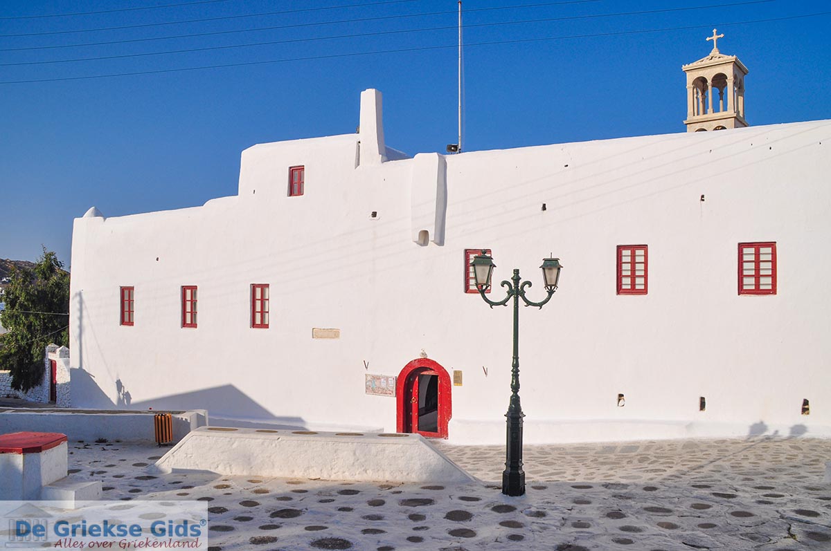 "Ano Mera, traditioneel dorp op Mykonos, met groot dorpsplein."
