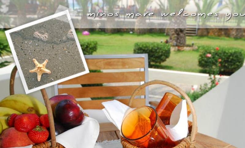 Minos Mare is omringd door mooie tuinen en ligt aan het strand. Er zijn goede verbindingen naar Rethymnon stad (Bus, taxi). In Platanias (Platanes) zijn er winkels en restaurants.