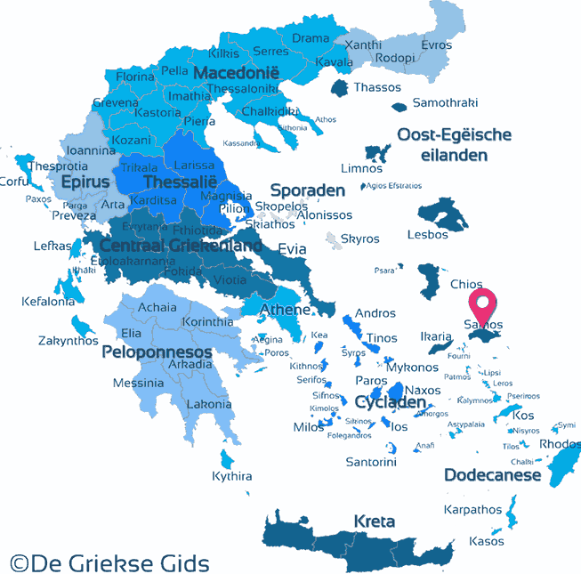 Samos is een mooi, groen eiland, met direct vanaf de kust bergen. Je hebt op vele plekken mooie uitzichten. Langs de noordkust vind je mooi gelegen kiezelstrandjes. De meeste toeristen verblijven in het leuke dorp Pythagorion of in Kokkari. De kleur van de zee is hier erg mooi. In het Zuiden zijn mooie zand/kiezelstranden. De natuur is hier ook erg mooi. Het langgerekte dorp Votsalakia/Kambos is een aanrader. Een fijne, relaxte sfeer, leuke tavernes aan het lange zandstrand en gezellige winkeltjes. Je bent er van harte welkom! En dan zijn er nog een aantal mooie bergdorpjes, kloosters en wandelpaden, die je zeker moet gaan ontdekken. Natuur, gastvrijheid en rust op dit mooie, authentieke eiland!